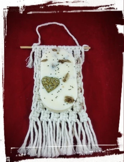 Handmade soy wax space fresheners & hand made macrame holder made to order.