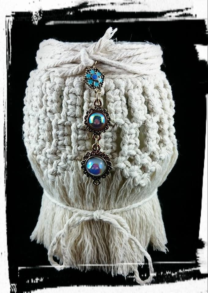 Our handmade Macrame candle wraps one of a kind gifts are made on a plain mason jar, macrame (cotton cord natural), add some Sweet-D-Lites bling.( embellishment will vary, unless request is made an availability of the same embellishment).